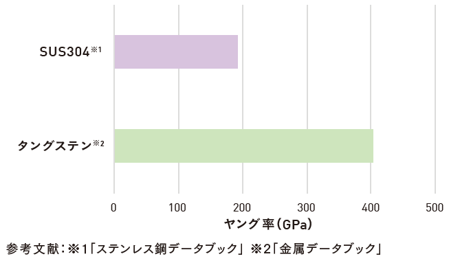 タングステン特有の高弾性により、ステンレス鋼(SUS304)と