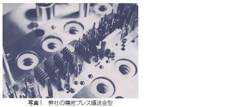 弊社は超硬合金メーカーでもありまた、古くより超硬合金製金型パーツの製作に従事し、さらには超精密プレス順送型の設計、製造、立上げ、販売を実施してまいりました(写真1)。