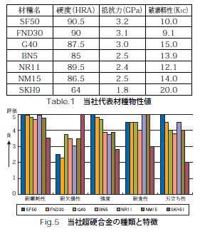 使用ワーク、機械、条件により、最適な超硬材料をご提供します。(Table.1、Fig.5参照)