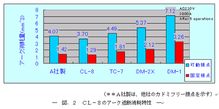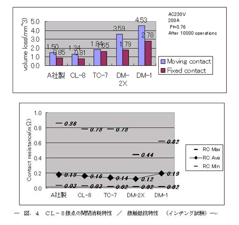 CL-8接点は、開閉消耗量が最も少なく、接触抵抗特性においても良好な結果が得られました。