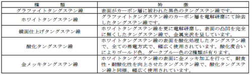 | タングステン線 | <0.025 | 3,000〜4,500 | 7.2 |