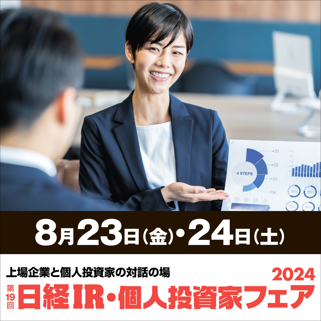 当社は、2024年8月23日(金)、24日(土)の2日間、東京ビッグサイトにて開催される「日経IR・個人投資家フェア2024」(主催:日本経済新聞社)に出展いたします。